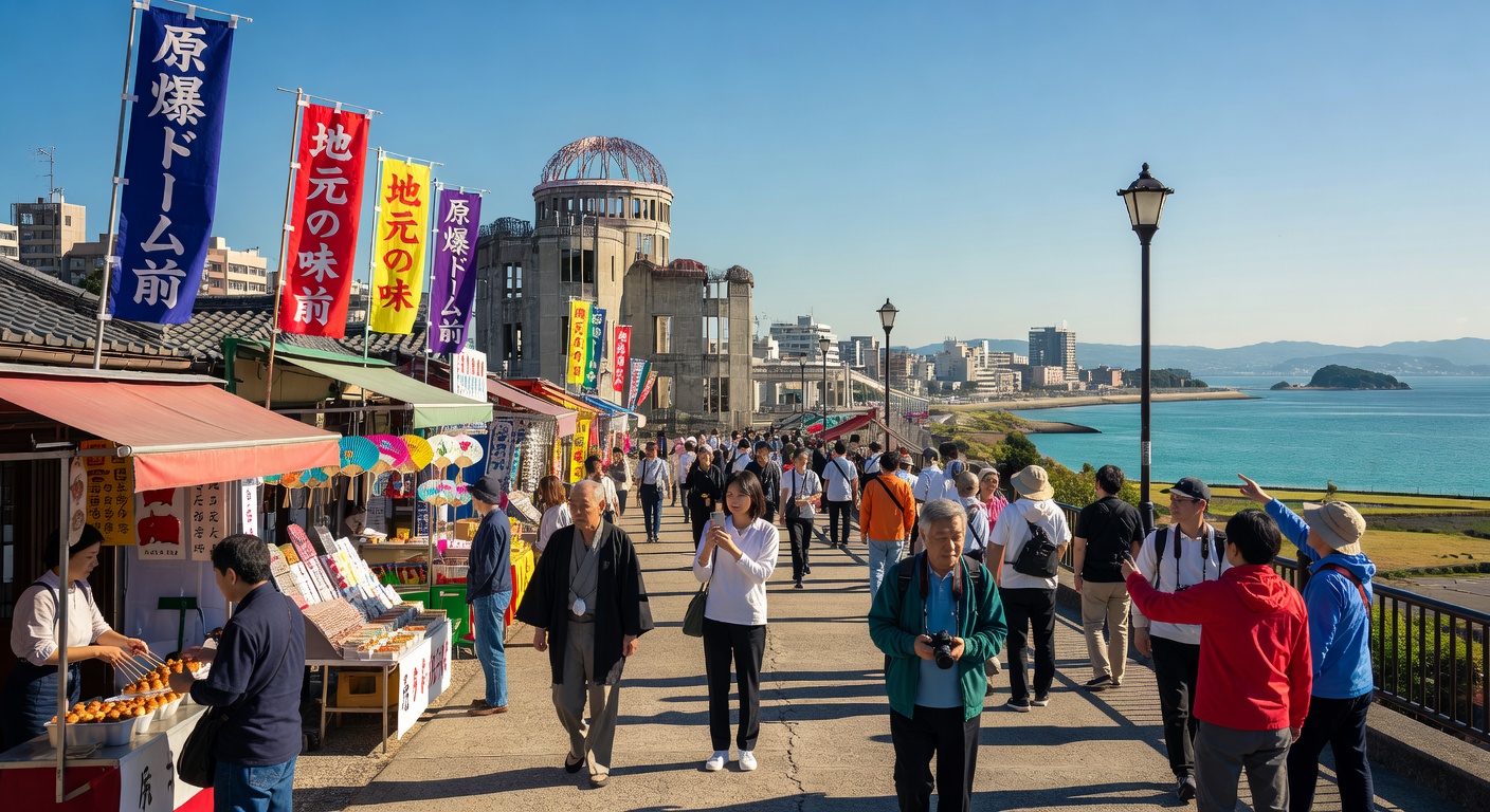 原爆資料館を見た後、夜は地元の居酒屋で瀬戸内の魚を食べ、翌朝は平和公園を散歩してから呉に向かう——こうした「2日間の広島体験」を設計できれば、消費額は5倍になる。